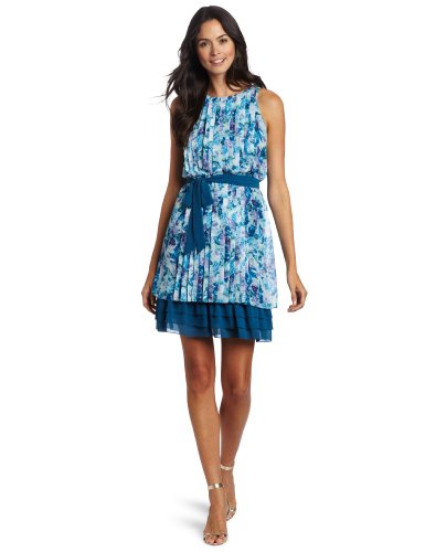 Jessica Howard Women's Pintuck Chiffon Dress, Blue, 8
