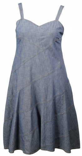 This casual summer dress from Ralph Lauren features no lining, concealed side zipper, hook & eye closure, sweetheart neckline, sleeveless, A-line silhouette, seam detailing, and lightweight denim fabric. Wear as alone or layer as jumper.