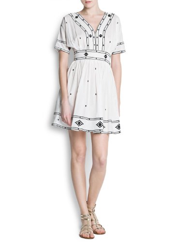 Mango Women's Cotton Embroidered Dress, Off-White, 8
