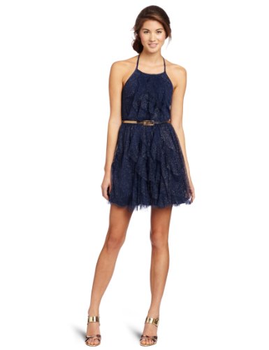 Teeze Me Juniors Glitter Halter Dress, Navy, 3