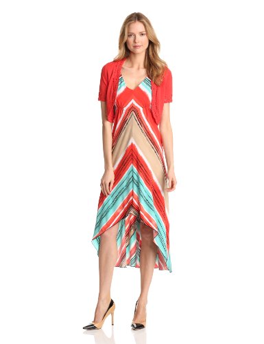 AGB Women's Two Piece Maxi Dress With Crochet Sweater, Coral, 14