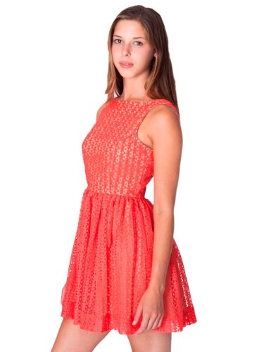 American Apparel Lace Sun Dress Large Bright Coral