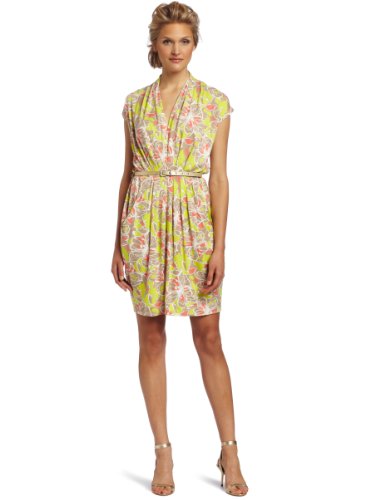 Anne Klein Women's Petite Floral Print Dress, Lime Sorbet Multi, Petite/Small