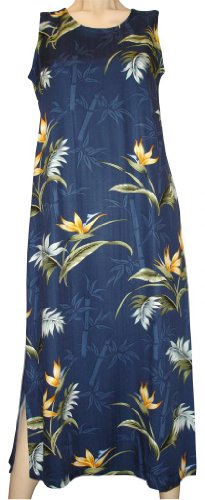 Bamboo Paradise Dress - Womens Hawaiian Dress - Aloha Dress - Hawaiian Clothing - 100% Rayon Navy XS