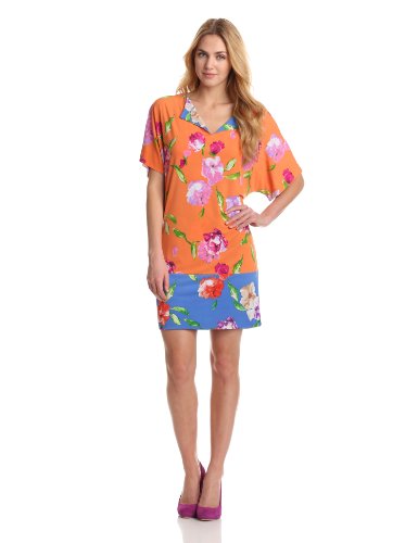 Isaac Mizrahi Women's Floral Combo Shirt Dress with Sleeve, Orange/Multi, 6