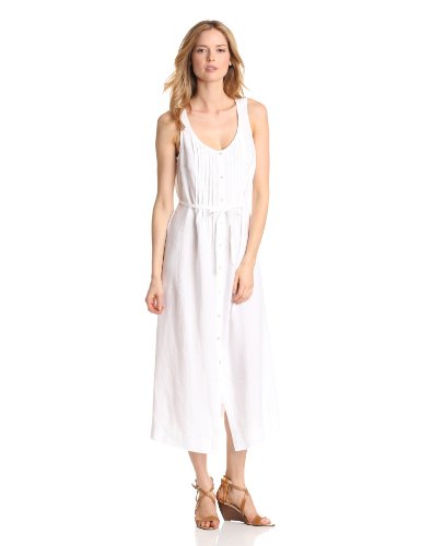 Jones New York Women's Pintuck Button Front Tank Dress, White, Medium