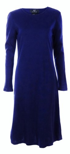 This sleek smooth knit Nina Leonard sweater dress has an A-line silhouette. Features include: long sleeves, crew neckline, pull over design, straight hemline, and a pleasant dark plum color. Perfect for suitcase packing for those chilly getaways