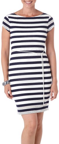 Sharagano Striped Open Knit Belted Dress NAVY/WHITE 8