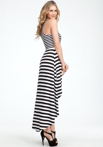bebe Mixed Stripe High Low Maxi Dres Day Dresses Black White-xs