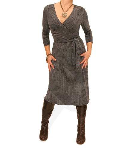 - Classic style wrap dress made from a premium quality stretchy ribbed knit.
