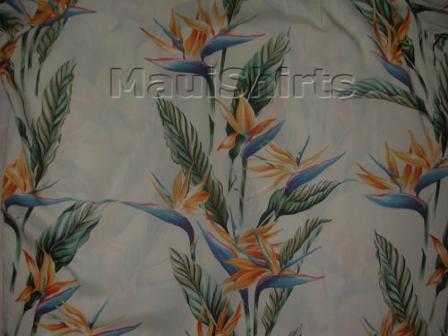 Button Front Long Tank - Bird of Paradise Panel Empire Waist Ruched Bust Line Drawstring Back Tie Hawaiian Aloha Ankle Length Dress in Cream - S