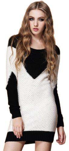 Chendvol Patchwork Contrast Color Wool Acrylic Dress for Women (Small, White)