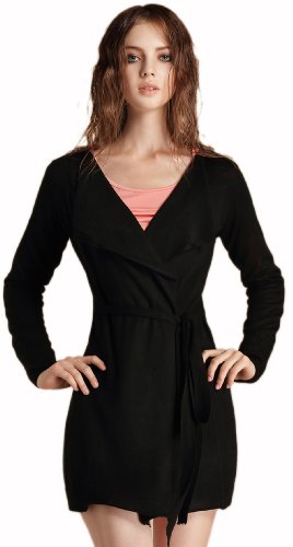Chendvol Peaked Lapel Slim Waistband Knitted Cardigan Dress for Women (Medium, Black)