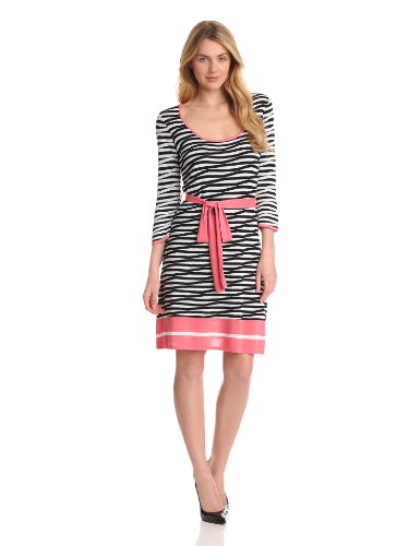 Evolution by Cyrus Women's 3/4 Sleeve Broken Stripe Dress, Black Combo, Medium