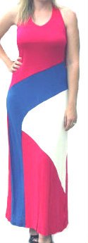 Fun Point Pink, Blue, and White Color Blocked Maxi Dress (Large)