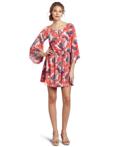 Jessica Simpson Women's Kimono Sleeve Mini Dress with Pineapple Smocking, Billie Chili, 8