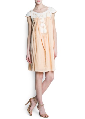 Mango Women's Embroidered Cord Cotton Dress, Peach, 2