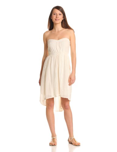 Quiksilver women's "seaside dress" strapless corded cotton voile dress with removable spaghetti straps and princess neckline. 36.5" hps body length.