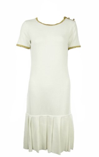 Sutton Studio Tipped Box Pleat Metallic Dress (8 Petite, White/Gold) [Apparel]