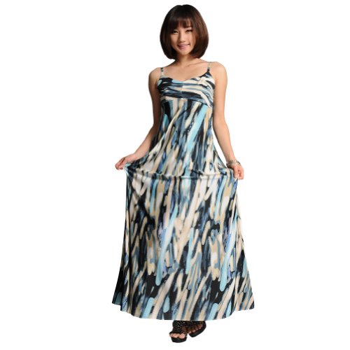 1veMoon Elegant&Sexy Sling Stripe Pattern Dress, Blue, Medium