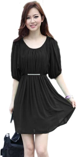 Chendvol New Arrival Imitated Silk Fabric with Waistband Long Dress for Women (Small, Black)