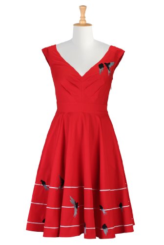 eShakti Women's Birds eye view dress L-14 Regular Poppy red