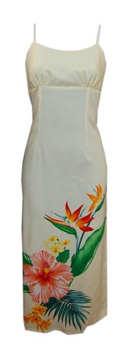 Jade Fashions Inc. Women's Hawaiian Tropical Spaghetti Strap Dress-Cream-L