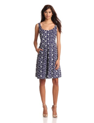 Nine West Dresses Women's Flower Embroidery Dress, Navy Combo, 4