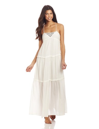 Quiksilver girls chula vista maxi solid tiered maxi dress with front chest embroidery applique