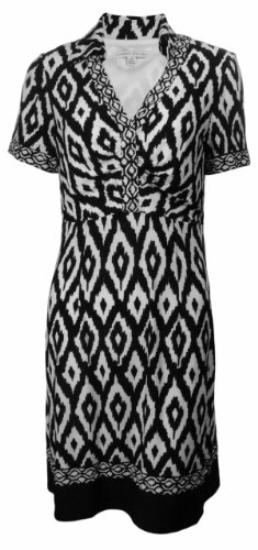 Sandra Darren Women's Casual Ikat Jersey Dress Black/Ivory (10) [Apparel]