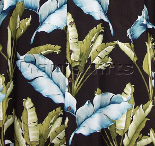 Tie Back Tea Length Dress - Women's Banana Leaf Adjustable Drawstring Back Tie Hawaiian Aloha Evening Pullover Dress in Black - S