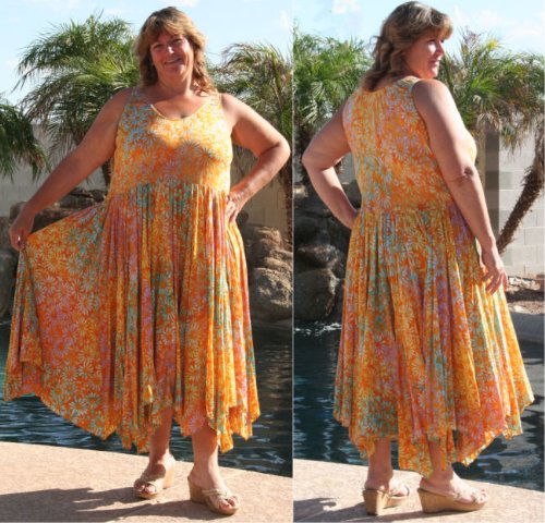 Batik Sundress with Hankerchief Hemline - 3X/4X 56-62" Bust