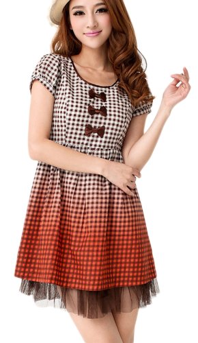 Chendvol British Grid with Lace Embellished Dress for Women (Medium, Chocolate)