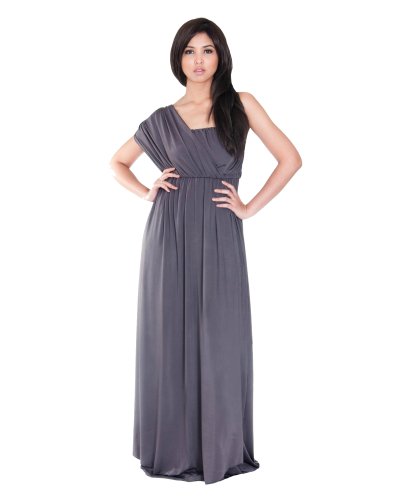 Koh Koh Women's Elegant One Shoulder Grecian Inspired Designer Evening Cocktail Gown Long Maxi Dress - Small - Gray