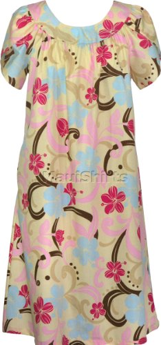 MuuMuu House Dress - Stylish Hibiscus Petal Sleeves Caftan Kaftan Hawaiian Aloha Pullover Polyester Cotton Lounger in Beige - 2X Plus