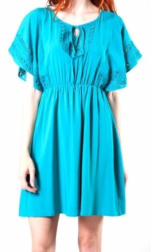 Ya Los Angeles Gorgeous Turquoise Blue Dress with Crocheted Detailing - Medium