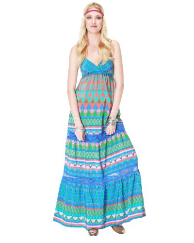 Flying Tomato Bohemian Printed Maxi Dress-Blue-Small