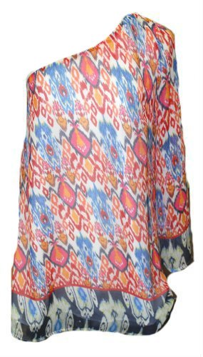 Karlie Beautiful and Fun One Shouldered Mini Dress with Bright Abstract Pattern (Medium)