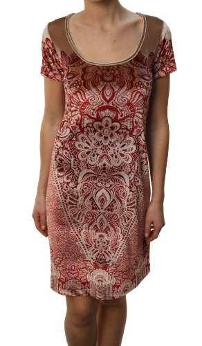 Lucky Brand Women's "Holly Hock" Flower Pattern Dress Maroon-Large