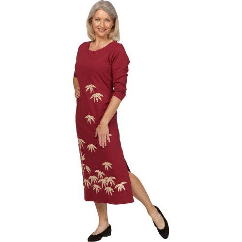M.Mac's Bamboo Garden ¾ Length Sleeve Dress Burgundy with Tan Print-2x