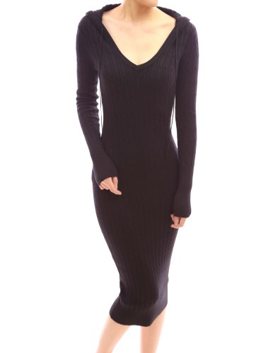 Patty Women Comfy Black Hoodie Cable Jumper Knit Casual Party Long Maxi Dress (Black M)