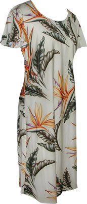 Bird of Paradise #2 Print Hawaiian Cap Sleeve Short Tank Dress in Cream #2 Print L