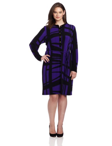 Calvin Klein Women's Plus-Size Print Shirt Dress, Electric Purple Combo, 1X