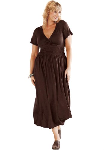 Ellos Plus Size Dress With Surplice Empire Waist (Chocolate,4X)