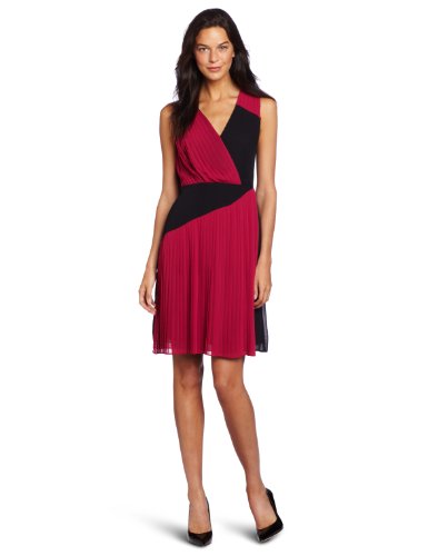 Gabby Skye Women's Surplus Front Pleated Dress, Fucshia/Black, 8 Missy