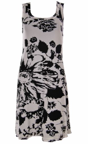 Karen Kane's Flower Burst Tank Dress features fully lined, net overlay, contemporary black and white floral print, seam detailing, sleeveless, and scoop neck front and back. 100% Nylon. Hand wash or Dry clean. Made in USA of imported fabric.