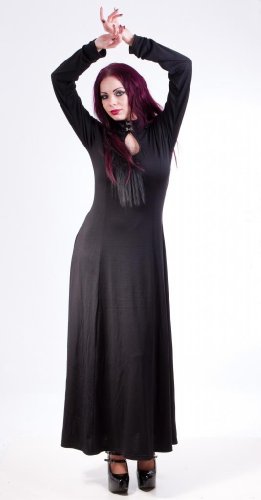 Full length Necessary Evil Shala gothic dress. Made from soft jersey it will cling to and flatter your figure.