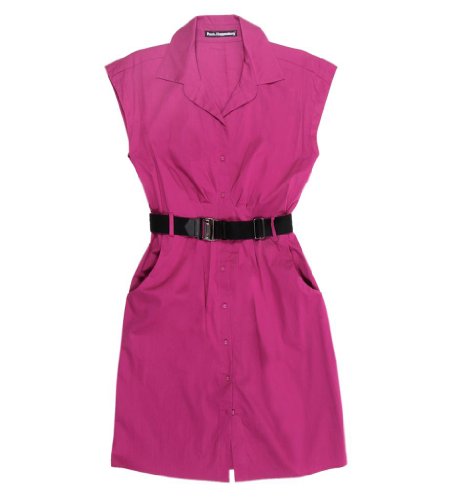 Peek & Cloppenburg Women´s fuchsia shirtdress, sleeveless, to button completely in the front with black belt, size 10