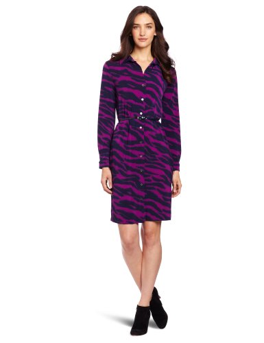 Anne Klein Women's Long Sleeve Polo Dress, Navy/Purple, Small