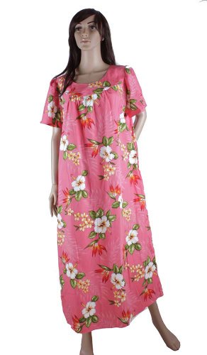 Hawaiian 100% Cotton Pink Flower Muumuu Dress, 2XL